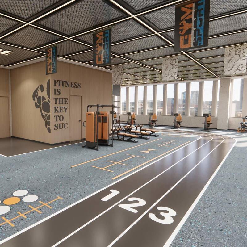 سالن تناسب اندام، کف ضد لغزشی ایمن و مقاوم در برابر فرسایش 0