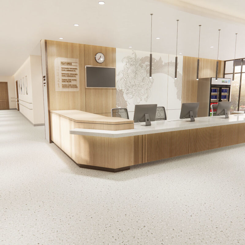 • LVT: راحت، عایق صوتی، تمیز کردن آسان و ضد باکتری → ایده آل برای بخش ها / مناطق انتظار.